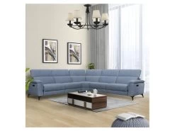 CanapĂ© D’angle Panoramique Relax Ă©lectrique – Tissu Bleu Clair – MELBOURNE