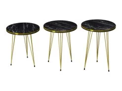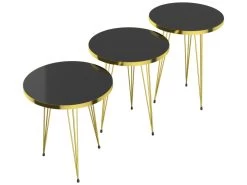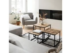 Bobokan – 3 Tables Basses Gigognes CarrĂ©es En MĂ©tal Et Teck RecyclĂ© – Couleur – Bois Clair / Noir