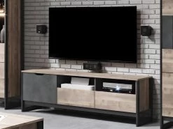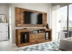 Meuble Tv Rhin Design 100 % Panneau De Particules Plaqué Mélaminé En Couleur Nogal, 120x45x35cm