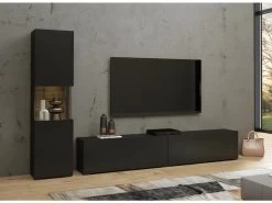 Ensemble Meuble TV FLY R3 Avec LED. Coloris Noir Et Blanc. Meuble Suspendu Design Pour Votre Salon.