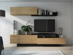 Salon IDEM « Naturale » – Ensemble De Meubles – Meuble Bas TV – ChĂȘne/Noir – 200x180x40cm