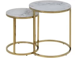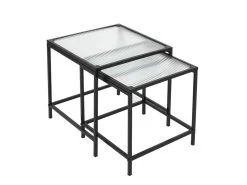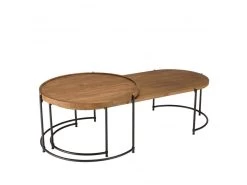 Bobokan – 3 Tables Basses Gigognes CarrĂ©es En MĂ©tal Et Teck RecyclĂ© – Couleur – Bois Clair / Noir
