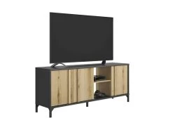 Meuble TV Avec 3 Tiroirs Et 1 Niche En Bois De Manguier Et MĂ©tal Noir – Naturel Clair – HARLEM