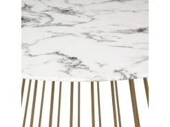 Table À Manger « rayo », Plateau Verre Trempé Effet Marbre, Blanc Dimensions 120x120x75