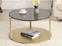 Table Basse Avec Plateaux Pivotants JOLINE – Verre TrempĂ© Transparent Et Pied ChromĂ© Noir