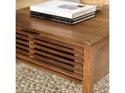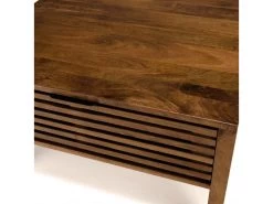 Table basse carrée 70x70cm en bois de manguier 2 tiroirs ajourés. Dimensions : 70 x 70 x 41 cm. Article en Manguier/MDF.