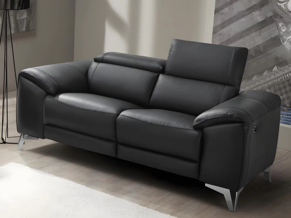 Canapé 2 Places Relax électrique En Cuir FRANSKA – Noir