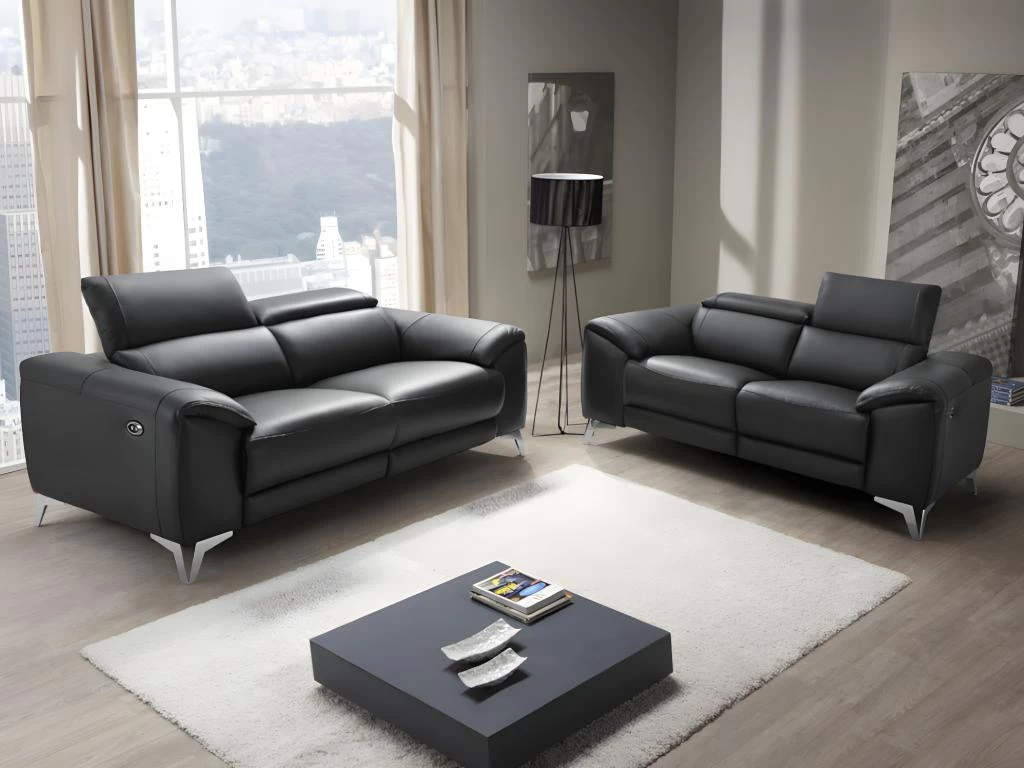 Canapé 3 Places Relax électrique En Cuir De Vachette Noir NOVENA