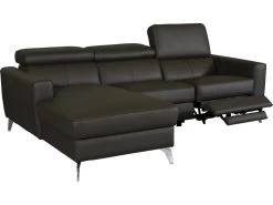 Canapé D’angle Relax électrique En Cuir SITIA – Noir – Angle Gauche