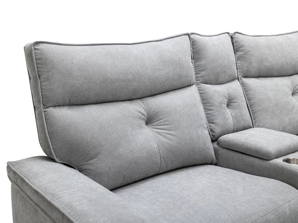 Vous souhaitez un canapé qui vous permettra de profiter de moments conviviaux ? Choisissez le canapé d’angle panoramique BENJAMIN ! Grâce à son mécanisme de relaxation électrique, vous y passerez d’agréables moments de détente. Ses dimensions généreuses et ses porte-gobelets font de lui un canapé propice aux soirées télé avec vos proches.