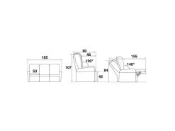 La taille contenue de ce beau canapĂ© (185 cm) vous autorise un placement aisĂ© dans votre salon, l’inclinaison peut se faire de 100° Ă 140°.