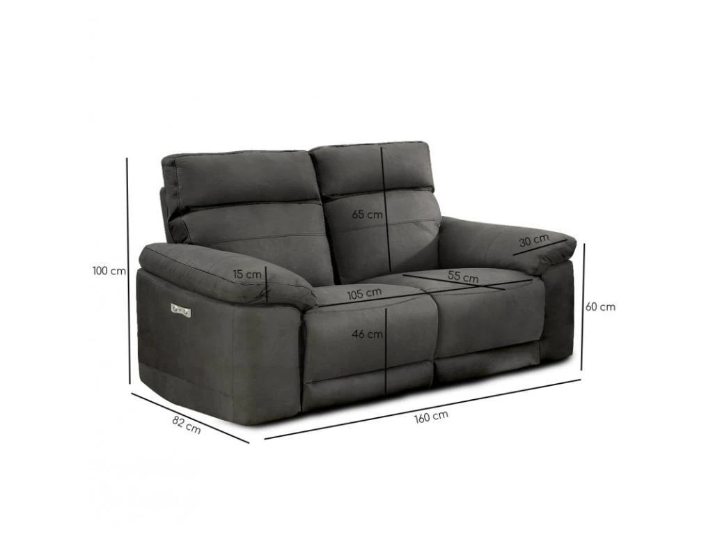 - Dimensions: Largeur 160 cm x Hauteur 100 cm x Profondeur 82 cm / Hauteur d’assise 47 cm / hauteur dossier 65 cm / largeur accoudoir 30 cm