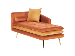 Chaise Longue Côté Gauche En Velours Orange Et Pieds Dorés GONESSE