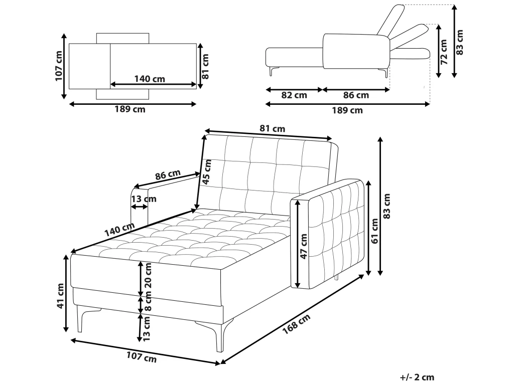 Surface d`assise: 140×81 cm