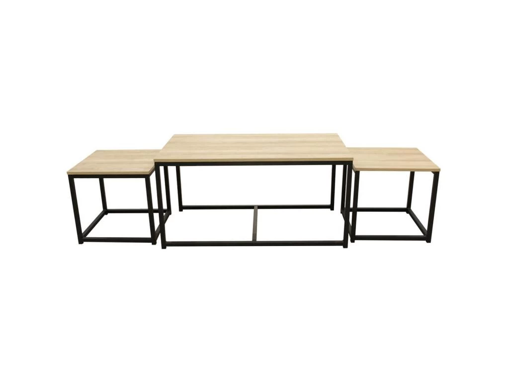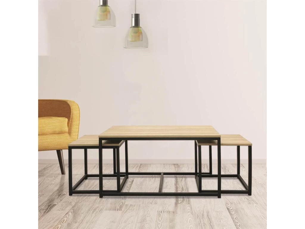 Offrez Ă votre dĂ©cor une touche industrielle unique. Le lot est composĂ© d’une table rectangulaire, sous laquelle se retrouvent 2 tables carrĂ©es supplĂ©mentaires Ă disposer comme vous le souhaitez et qui se rangent aisĂ©ment.