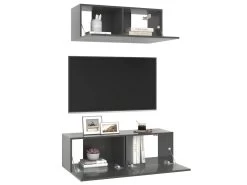 Équipé d’un grand espace de rangement pour organiser divers articles, cet ensemble de meuble TV suspendu sera certainement un supplément pratique et accrocheur dans votre maison.