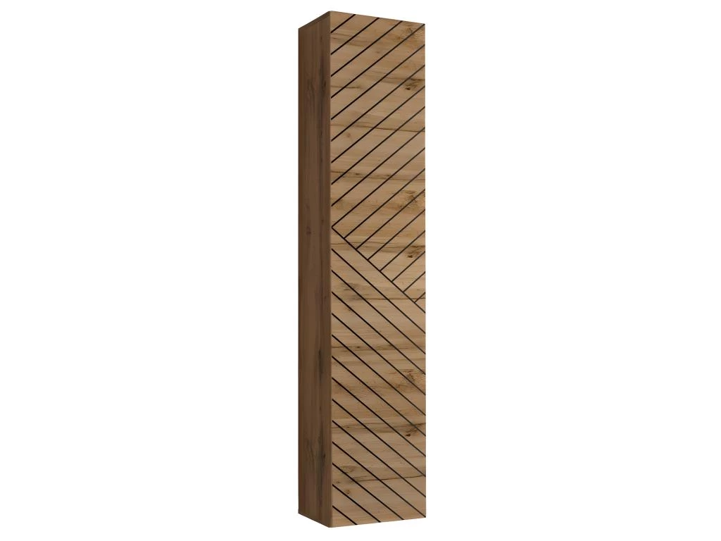 * Colonnes suspendues : Corps du meuble chêne Wotan. Façade coloris chêne Wotan finition fraisée.