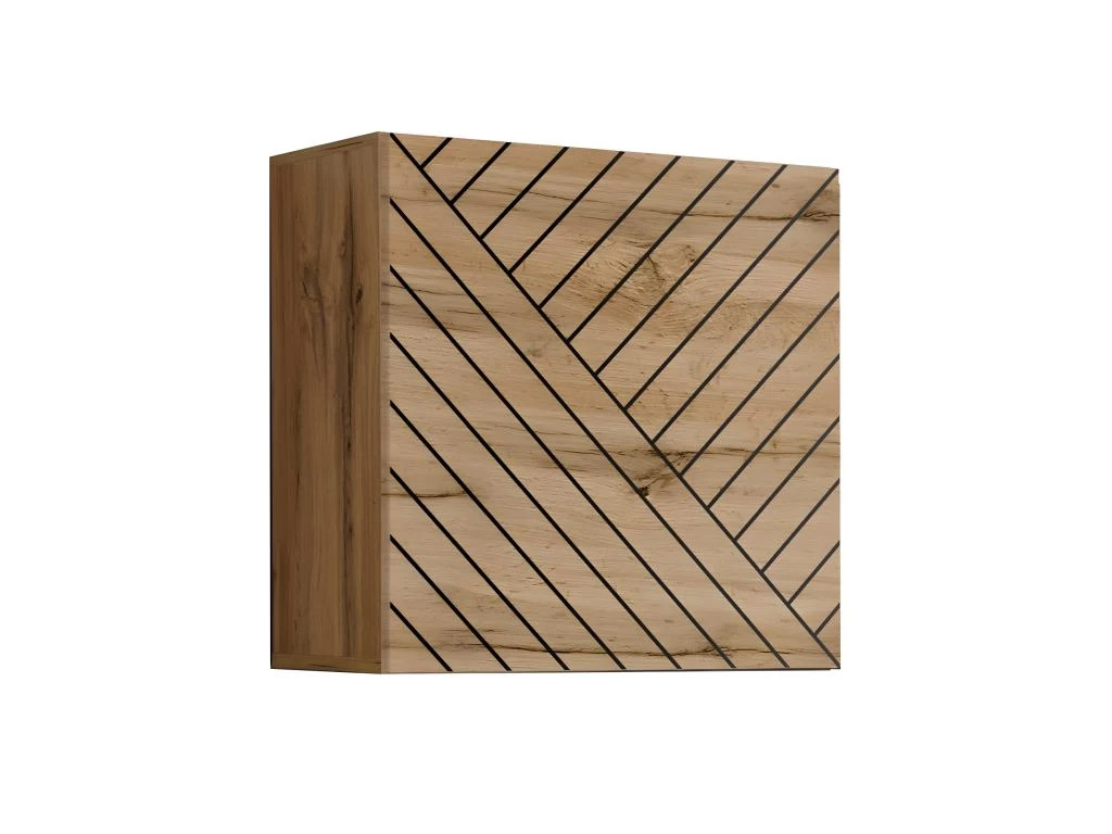 * Bloc cubes : Corps du meuble chêne Wotan. Façade coloris chêne Wotan finition fraisée.