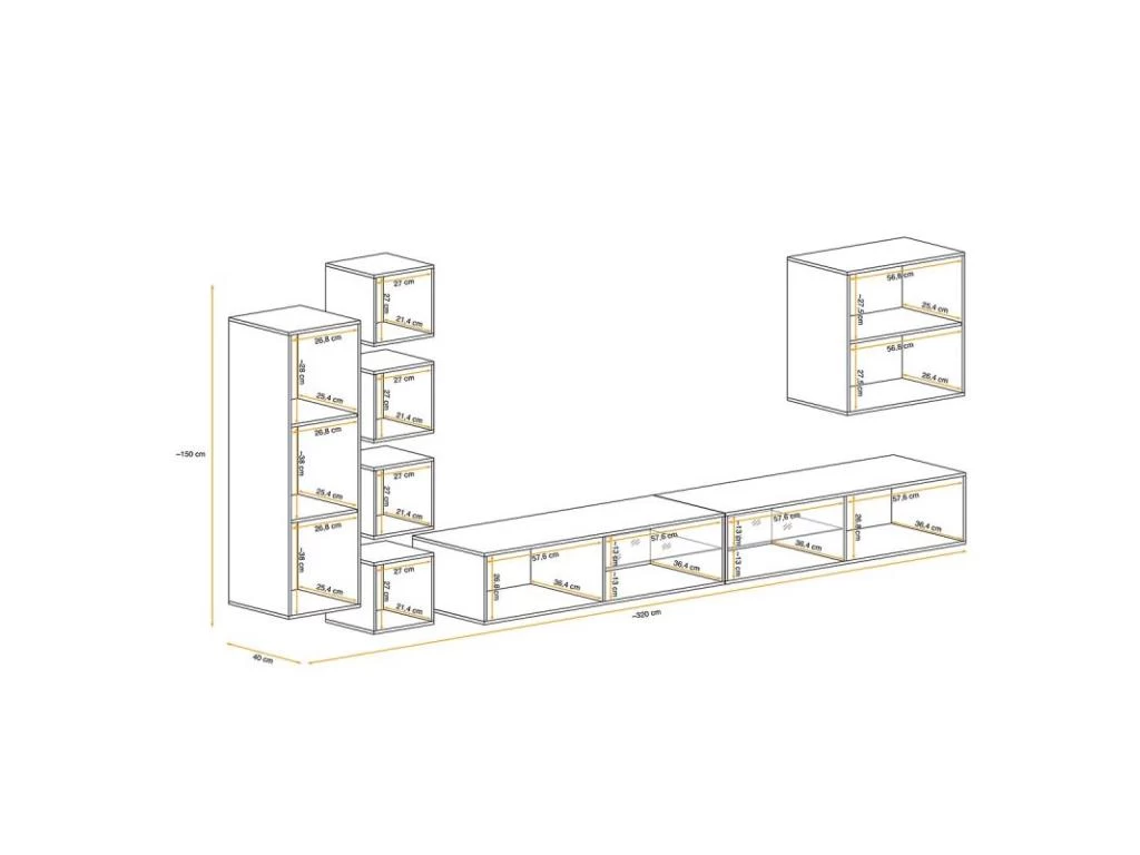 - Dimensions : L. 320 x l. 40 x H. 150 cm (selon positionnement souhaité)