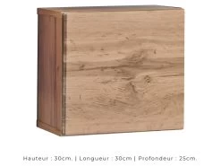 * Cubes suspendus : Corps et façade du meuble couleur chĂȘne.