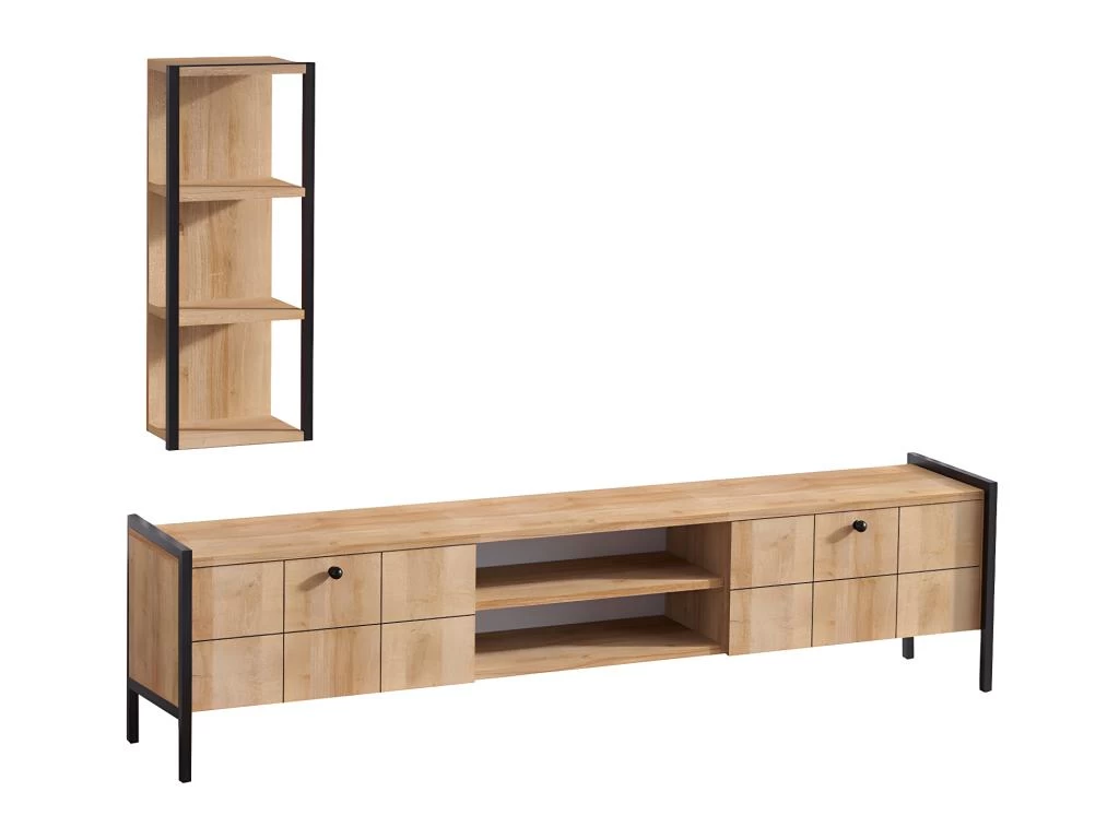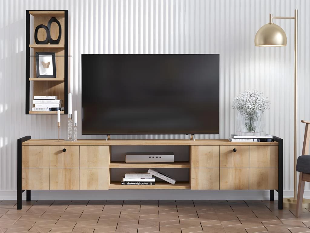 Le meuble TV PAMINA vous offre une combinaison de couleur qui s’adapte à de nombreux intérieurs. En effet le naturel et le noir se marieront à merveille dans votre salon.