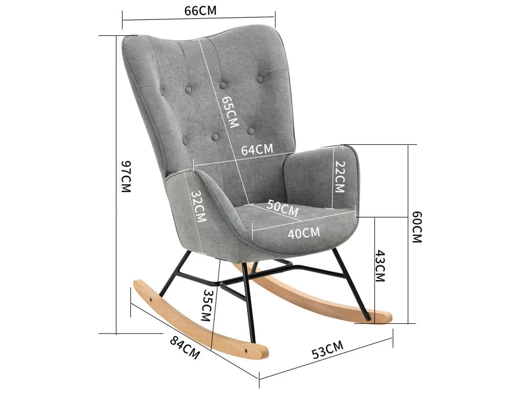 CHAISE DE RELAXATION CONFORTABLE: Une chaise berçante rembourrée confortable vous procurera un sentiment de détente sans précédent!. Les coussins moelleux et le dossier légèrement dos à dos vous permettent de vous détendre après une longue journée de travail. Les accoudoirs sont remplis d’une éponge douce et vous pouvez détendre vos bras. Ce fauteuil berçant est doté deux patins incurvés en bois aux pieds métalliques. Vous pouvez vous y balancer d’avant en arrière pour vous détendre dans une position délassante.