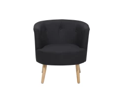 Fauteuil cabriolet en tissu noir avec dossier arrondi. Ce fauteuil en tissu noir vous offrira une expĂ©rience unique de relaxation. Il est en polyester robuste et est extrĂŞmement confortable grâce Ă son assise moelleuse, ses accoudoirs et son dossier au design intemporel, ce fauteuil est idĂ©al pour les moments de dĂ©tente Ă la maison. Le siège se compose d’un revĂŞtement en polyester très rĂ©sistant, agrĂ©able au toucher et facile Ă entretenir. Les pieds eux sont en bois massif pour assurer une bonne stabilitĂ©. Le design simple de ce fauteuil facilitera son intĂ©gration dans votre intĂ©rieur contemporain ainsi que dans un intĂ©rieur Ă la dĂ©coration plus classique. DĂ©tails: Type de produit: Fauteuil Style: Moderne Couleur principale: Noir Type de matière: Tissu Matière principale: Polyester Matière secondaire: Bois d’hĂ©vĂ©a Matière du rembourrage: Rembourrage en mousse Matière du piĂ©tement: Bois solide Matière de l`assise: Tissu Composition de la matière: 100% Polyester Style des accoudoirs: EncastrĂ© Accoudoirs: Oui Patins pour pieds: Oui Motif: Unicolore Inclinable: Non Construction du siège: Bande Ă©lastique DensitĂ© de la mousse du siège: 24 kg/m3 Dimensions: Dimensions des accoudoirs: 74 cm Profondeur: 50 cm Épaisseur du siège: 19 cm Hauteur du siège: 45 cm Largeur: 63 cm Hauteur: 74 cm Surface d`assise: 63×53 cm Poids: 13 kg Charge admise: 150 kg L`offre inclue: 1 x Fauteuil CaractĂ©ristiques clĂ©s: Solution parfaite pour la chambre et le salon, Capitonnage dĂ©coratif, Design moderne, Rembourrage de qualitĂ© supĂ©rieure, Patins pour le pieds assurent la protection contre les rayures Informations d`assemblage: PrĂ©assemblĂ©. 20 – 40 min Conseils de maintenance: Polyester: 1. Aspirez en utilisant l’embout appropriĂ© 2. Nettoyez avec un shampooing sec ou une Ă©ponge humide et un nettoyant doux. Bois d’hĂ©vĂ©a: 1.Nettoyez avec un chiffon et un nettoyant doux dans le sens du grain du bois 2.De temps en temps, il est conseillĂ© de mettre une nouvelle couche d’huile sur les meubles avec une finition huilĂ©e 3.Essuyez immĂ©diatement après le nettoyage pour empĂŞcher l’eau de s’accumuler sur les meubles.