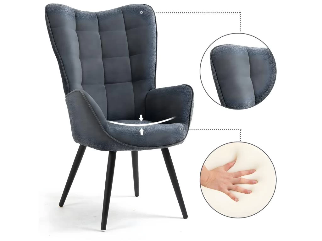 ERGONOMIE: Fauteuil d’appoint élégant et moderne, design ergonomique au hauts du dos s’adaptant parfaitement à la courbe de votre dos, soutien doux du coussin du dos permettant de soulager le dos, confort optimal – Le fauteuil se caractérise par un agréable rembourrage, un dossier et des accoudoirs hauts – Confort assuré pendant de longues heures.