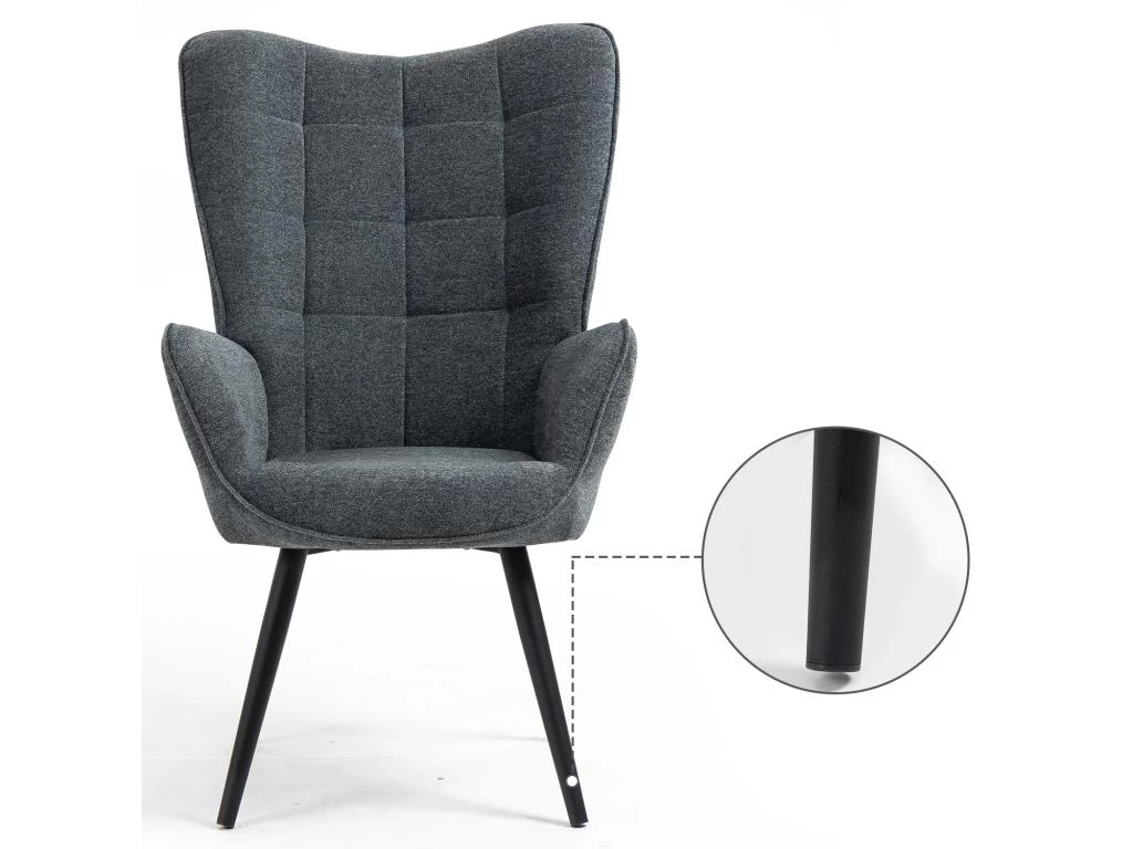 MATERIEL: Le tissu doux avec l’éponge de haute densité offre un grand confort pendant de longues heures. Grâce à la base en métal, vous vous sentez stable et rassuré. 4 housses de repose-pieds en plastique pour éviter de glisser et d’endommager votre sol. Ce fauteuil capitonné vous offrira une sensation unique de bien-etre.