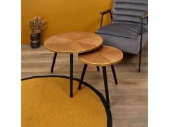 Tables Gigognes Plateau Effet Bois Cerclage Or de la gamme Gauthier.