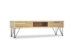 Ce meuble TV est supporté par de solides pieds en fer forgé.