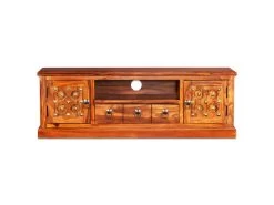 Fabriqué en bois massif de Sesham, l’armoire HiFi est stable, durable et facile d’entretien.