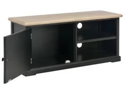 Fabriqué en MDF et en bois de Paulownia solide, ce meuble TV moderne comprend 1 porte et 2 compartiments ouverts permettant de garder divers objets tels que des appareils multimédia, des consoles de jeu, des magazines, etc.