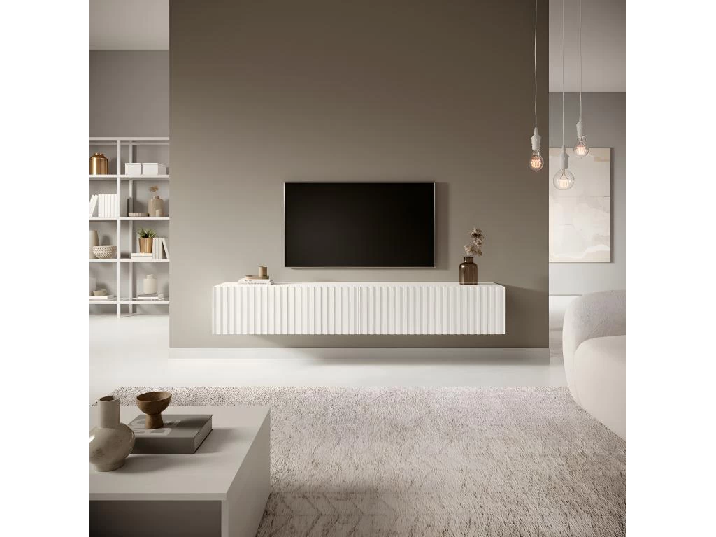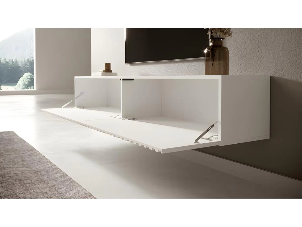 Le meuble RTV Telire deviendra certainement la pièce maĂ®tresse de votre salon. Il trouvera sa place dans les amĂ©nagements modernistes et industriels. Cependant, il s’intĂ©grera mieux aux intĂ©rieurs naturels dĂ©corĂ©s dans un style bohème ou botanique. AccompagnĂ© de fleurs et de couleurs naturelles, il sera très Ă©lĂ©gant, et la composition deviendra atmosphĂ©rique et chaleureuse – idĂ©ale pour se dĂ©tendre après une dure journĂ©e de travail. La façade fraisĂ©e, qui enrichit visuellement la forme simple, ajoute du charme Ă l’ensemble. L’intĂ©rieur a Ă©tĂ© divisĂ© en deux grandes armoires, qui accueilleront avec succès aussi bien les accessoires de votre Ă©quipement audiovisuel que les documents importants que vous devez toujours avoir Ă portĂ©e de main. Si vous tenez Ă personnaliser votre pièce, les souvenirs de famille ou les photographies importantes trouveront sans aucun doute leur place sur le large plateau du meuble.