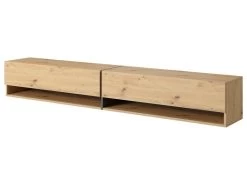 Le meuble TV Mirrgo se caractĂ©rise par une forme simple, enrichie d’une couleur tendance imitant le marbre. GrĂące Ă un insert vertical dorĂ© au milieu de l’unitĂ©, l’ensemble est trĂšs Ă©lĂ©gant et deviendra avec succĂšs une piĂšce maĂźtresse de la piĂšce. L’une des forces de ce meuble est sa capacitĂ© – 2 armoires verrouillables permettront de cacher tous les jeux de la console, les cĂąbles supplĂ©mentaires ou d’autres petits objets pour lesquels il n’y a gĂ©nĂ©ralement pas assez de place dans la piĂšce. Les 2 Ă©tagĂšres ouvertes placĂ©es en dessous seront une cachette parfaite pour un dĂ©codeur, une console ou un livre en cours de lecture.