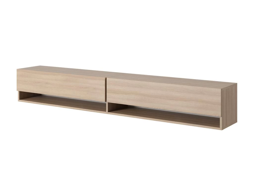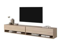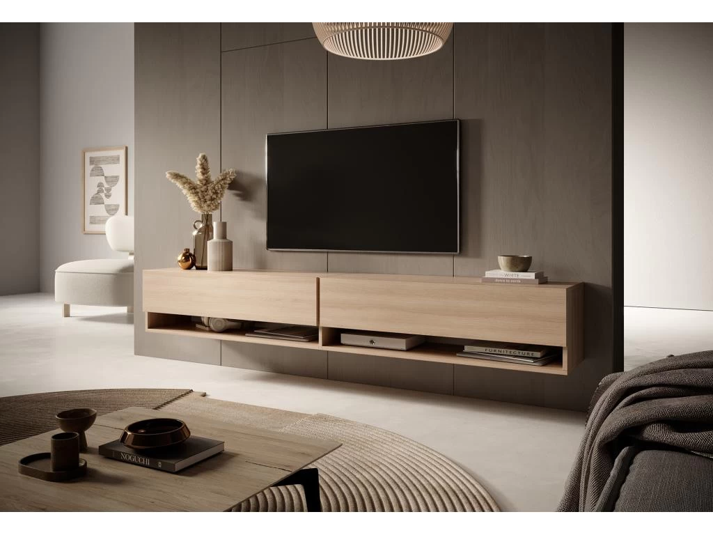 Le meuble TV Mirrgo se caractĂ©rise par une forme simple et deviendra avec succĂšs une piĂšce maĂźtresse de la piĂšce. L’une des forces de ce meuble est sa capacitĂ© – 2 armoires verrouillables permettront de cacher tous les jeux de la console, les cĂąbles supplĂ©mentaires ou d’autres petits objets pour lesquels il n’y a gĂ©nĂ©ralement pas assez de place dans la piĂšce. Les 2 Ă©tagĂšres ouvertes placĂ©es en dessous seront une cachette parfaite pour un dĂ©codeur, une console ou un livre en cours de lecture.