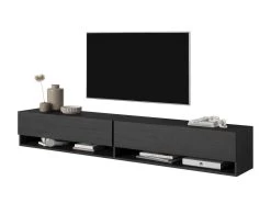 Le meuble TV Mirrgo se caractĂ©rise par une forme simple et deviendra avec succĂšs une piĂšce maĂźtresse de la piĂšce. L’une des forces de ce meuble est sa capacitĂ© – 2 armoires verrouillables permettront de cacher tous les jeux de la console, les cĂąbles supplĂ©mentaires ou d’autres petits objets pour lesquels il n’y a gĂ©nĂ©ralement pas assez de place dans la piĂšce. Les 2 Ă©tagĂšres ouvertes placĂ©es en dessous seront une cachette parfaite pour un dĂ©codeur, une console ou un livre en cours de lecture.