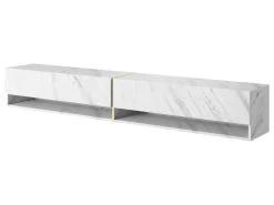 Le meuble TV Mirrgo se caractĂ©rise par une forme simple, enrichie d’une couleur tendance imitant le marbre. Grâce Ă un insert vertical dorĂ© au milieu de l’unitĂ©, l’ensemble est très Ă©lĂ©gant et deviendra avec succès une pièce maĂ®tresse de la pièce. L’une des forces de ce meuble est sa capacitĂ© – 2 armoires verrouillables permettront de cacher tous les jeux de la console, les câbles supplĂ©mentaires ou d’autres petits objets pour lesquels il n’y a gĂ©nĂ©ralement pas assez de place dans la pièce. Les 2 Ă©tagères ouvertes placĂ©es en dessous seront une cachette parfaite pour un dĂ©codeur, une console ou un livre en cours de lecture.