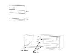 - Poids max supporté par le plateau : 40 kg / Epaisseurs des panneaux : Côtés 15 mm / Dessus 22 mm / Fond 2 mm / Tablettes intérieures 12 mm / Portes avant 19 mm.