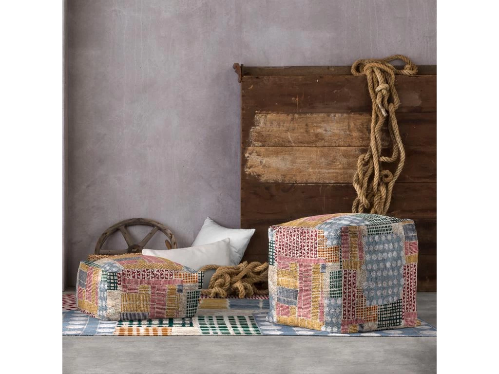 Pouf en coton RODIER avec lequel vous pouvez ajouter un siège supplĂ©mentaire Ă vos chambres sans prendre de place. Vous pouvez Ă©galement l’utiliser comme repose-pieds. Associez-le Ă l’un de nos tapis du mĂŞme design.