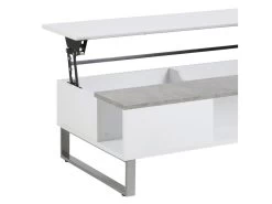 La table basse Kostrena est un petit meuble fabriquĂ© en panneaux MDF. Avec son piètement en mĂ©tal chromĂ© et l’Ă©lĂ©ment imitant le bĂ©ton sur le plateau, Kostrena constitue un joli exemple du meuble rĂ©alisĂ© dans le style contemporain. Le produit est Ă©quipĂ© d’un rangement cachĂ© sous son plateau relevable et d’une niche ouverte sur le cĂ´tĂ©, en crĂ©ant l’espace parfait pour ranger de petits objets qui encombrent votre salon.