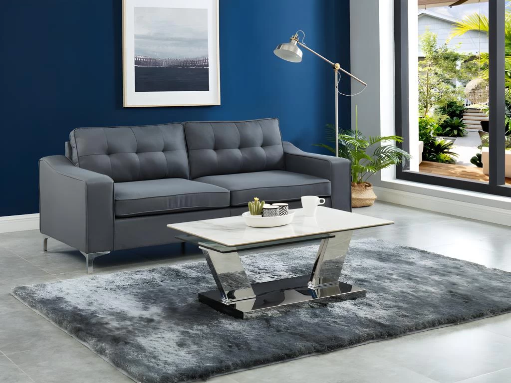 Lignes droites, éclat et ingéniosité caractérisent la table basse OXANA. Aussi pratique que design, cette élégante table basse en verre trempé, céramique et acier poli inoxydable ne manquera pas de surprendre tous vos convives.