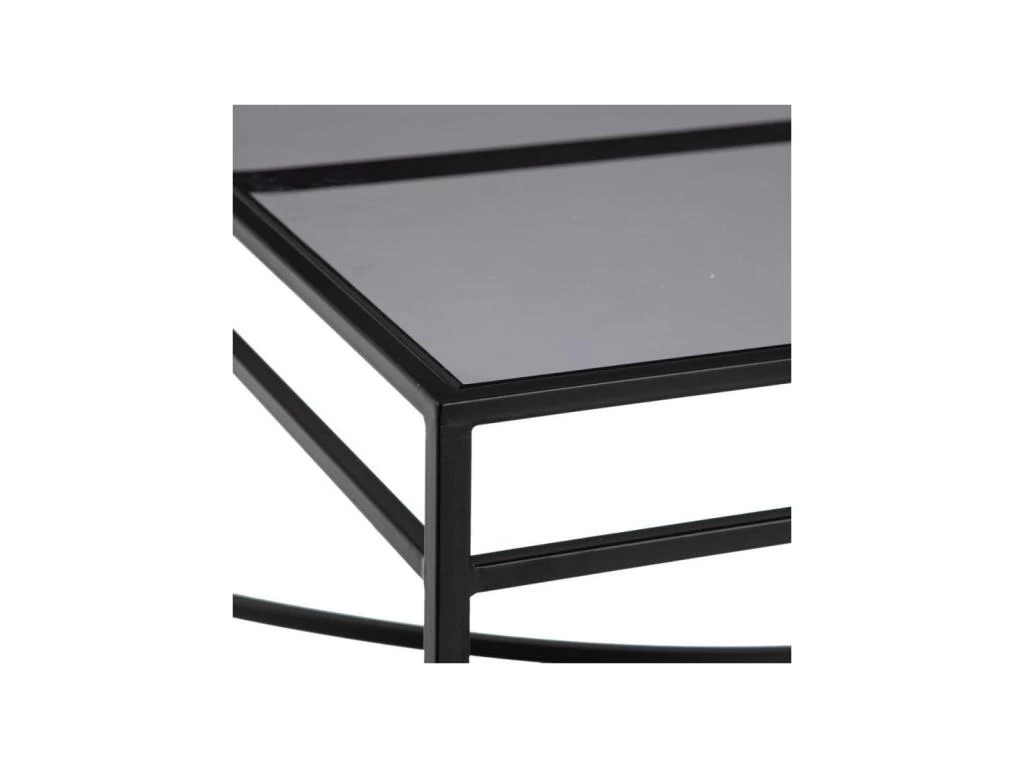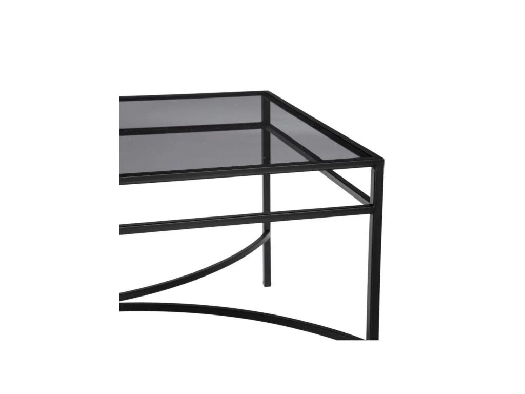 La struture sobre et élégante de cette table de salon soutient efficacement un plateau en verre fumé.
