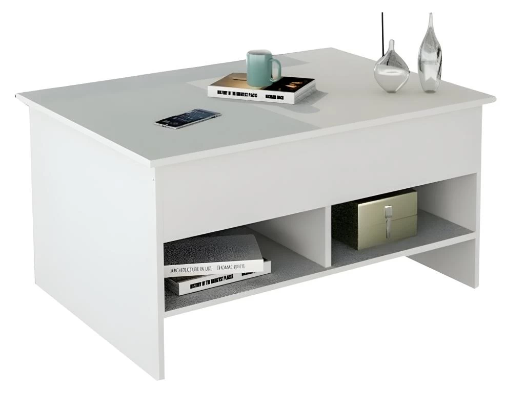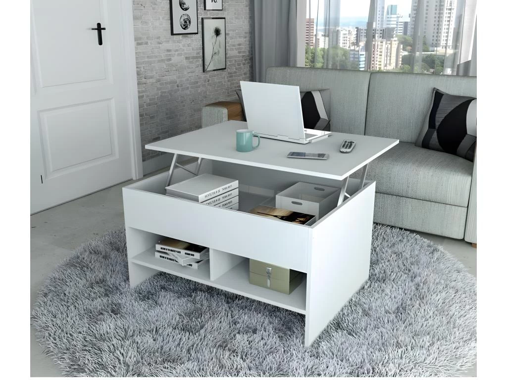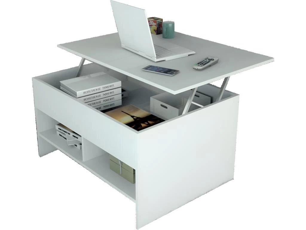 Table basse de salon avec Plateau Relevable Blanche.