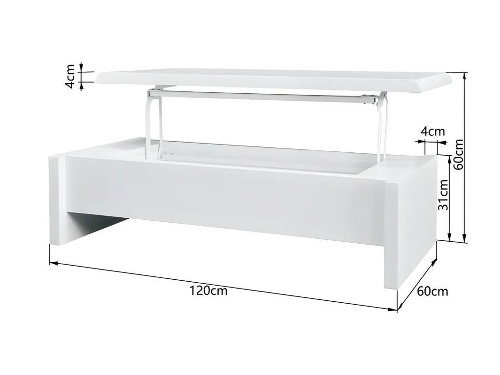 Table basse relevable – Blanc laquĂ© – L 120 x P 60 x H 35 – LARS