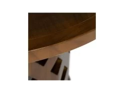 Chaleur et fort potentiel décoratif pour cette table basse ronde avec pied central.