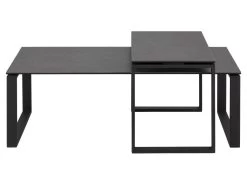 La lĂ©gèretĂ© visuelle de ces 2 tables basses et leur structure en mĂ©tal laquĂ© noir n’a que d’Ă©gale la stabilitĂ© qu’elles procurent, conçues astucieusement les structures de ces deux tables basses sont prĂ©vues pour s’imbriquer l’une dans l’autre.