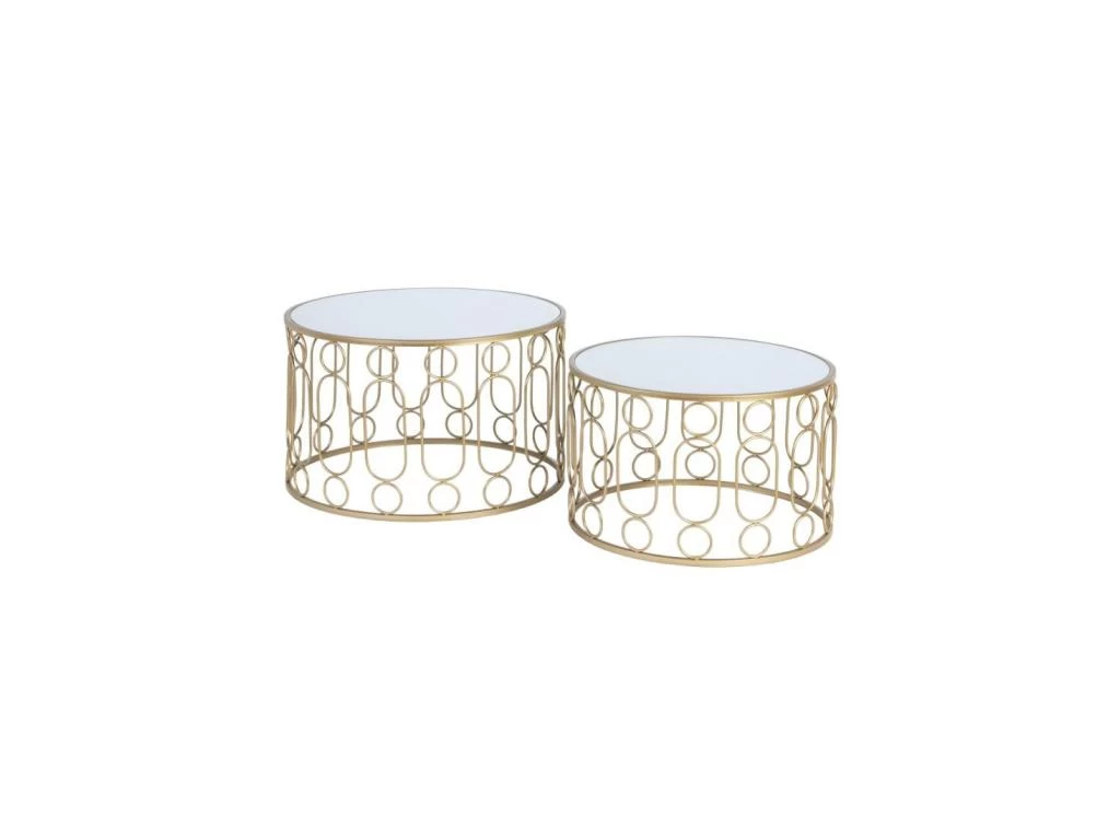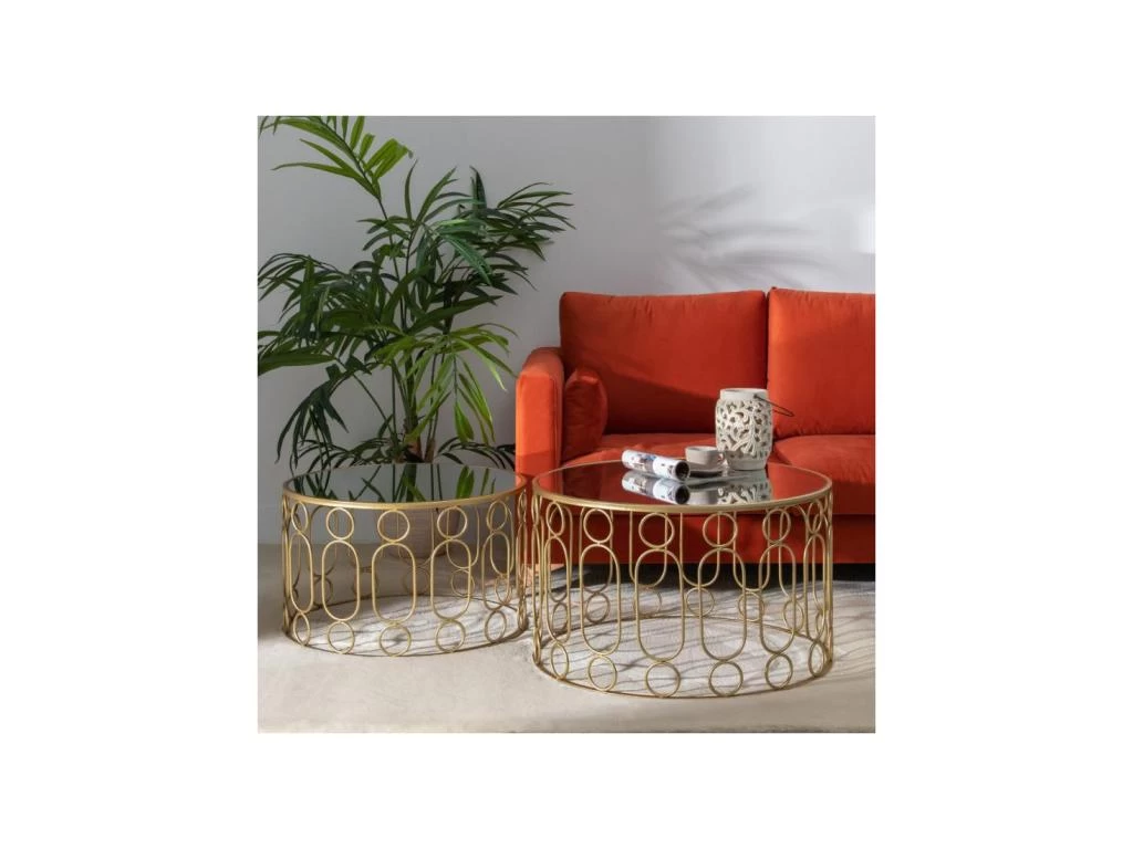 Parfaitement soutenu par un piétement en métal Or au design inspiré chacun des plateaux de ces tables est réalisé en verre miroir, la très belle qualité perçue de ce duo de tables de salon n’a d’égale que leur stabilité et leur robustesse.