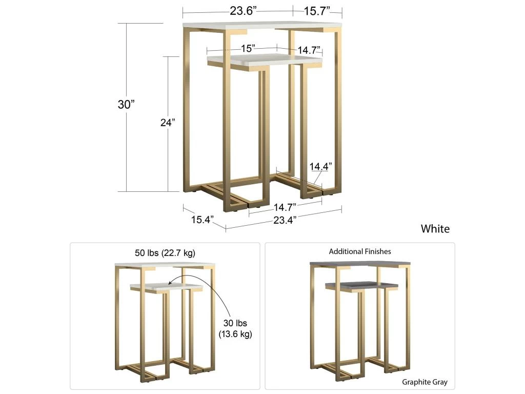 La petite table se glisse sous la grande, ce qui la rend idéale pour les petits espaces:Une finition blanche ou grise avec des accents dorés ajoute un aspect moderne et sophistiqué à votre salon.