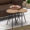 Ces 3 tables rondes de complĂ©ment proposent un piĂ©tement en mĂ©tal noir dont la forme leur permet de s’emboiter tout en leur offrant un design original et une stabilitĂ© satisfaisante.